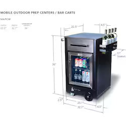 Outdoor rated fridge White granite surfaces 304 grade stainless steel Gliding rubber caster wheels Wheel leveler The Mont Alpi Beverage center...