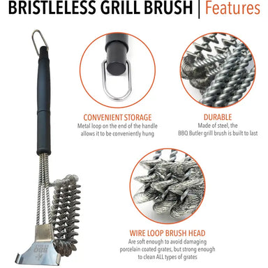 SAFE - No more wire bristles in food with no more sharp surfaces or edges! This BBQ Butler Stainless Steel Bristle Free Grill Brush provides peace ...
