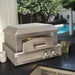 Get commercial quality and performance with this natural gas outdoor pizza oven from Artisan. This Countertop Pizza Oven preheats in 15 minutes and can reach over 800 degrees Fahrenheit allowing you to roast, bake, iron-skillet sear, and of course, cook perfect Neapolitan pizzas. The infrared hearth heating system with the rear burner boasts 40,000 BTUs of cooking power. The heat is held in by a double-walled insulated top. This oven offers 447 square inches of cooking surface which is large enough to bake a standard 14-inch pizza for your family. Internal halogen lights allow you to keep an eye on your pizza, and the removable arch and stainless steel door make cleaning your pizza oven easy. This unit has adjustable legs and is designed to conveniently sit on the countertop of your outdoor kitchen.